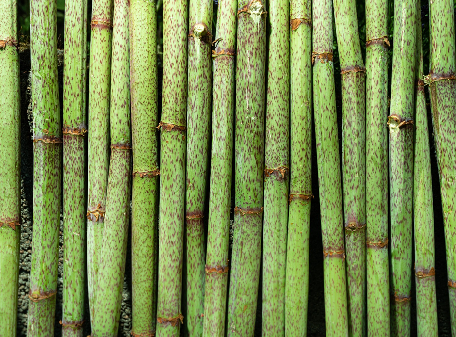 Above are Japanese Knotweed stems, you can see their red and purple speckles, also note the stems are bamboo like.